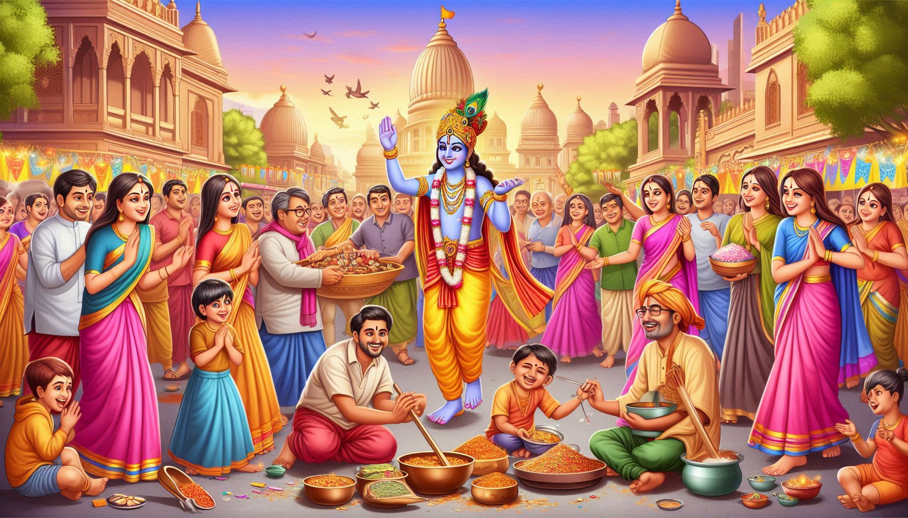 This act of decorating is not just about aesthetics; it is an expression of love and devotion. As you carefully place each flower and light each lamp, remember that Krishna is watching, smiling at your efforts just like a small child excitedly.